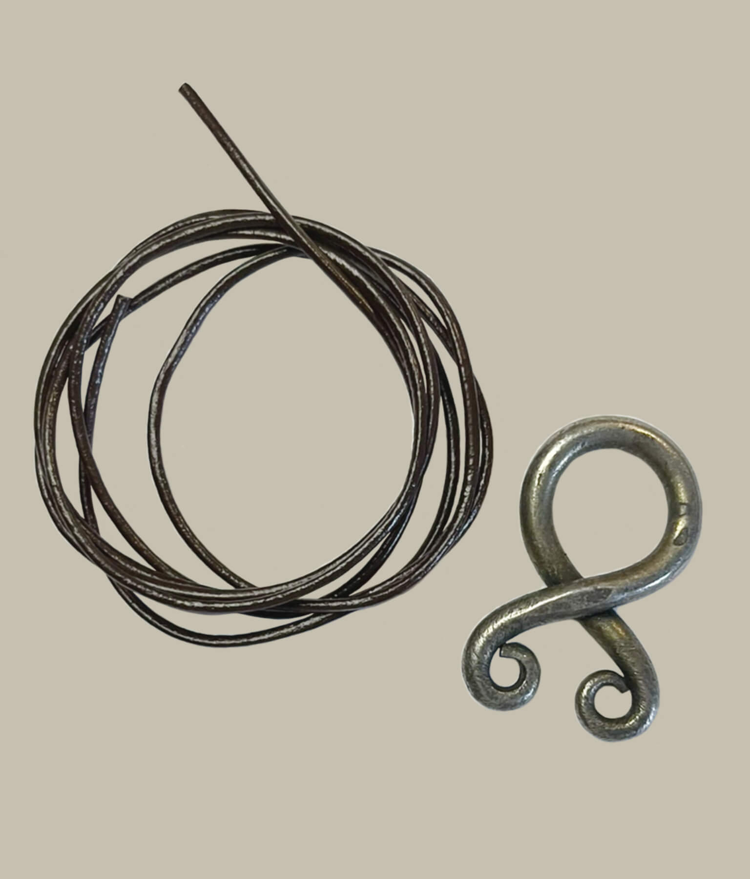 Trollkorset är handsmitt i järn och mäter ca 4,5 – 2,5 cm och kommer med en läderrem i svart eller brunt.